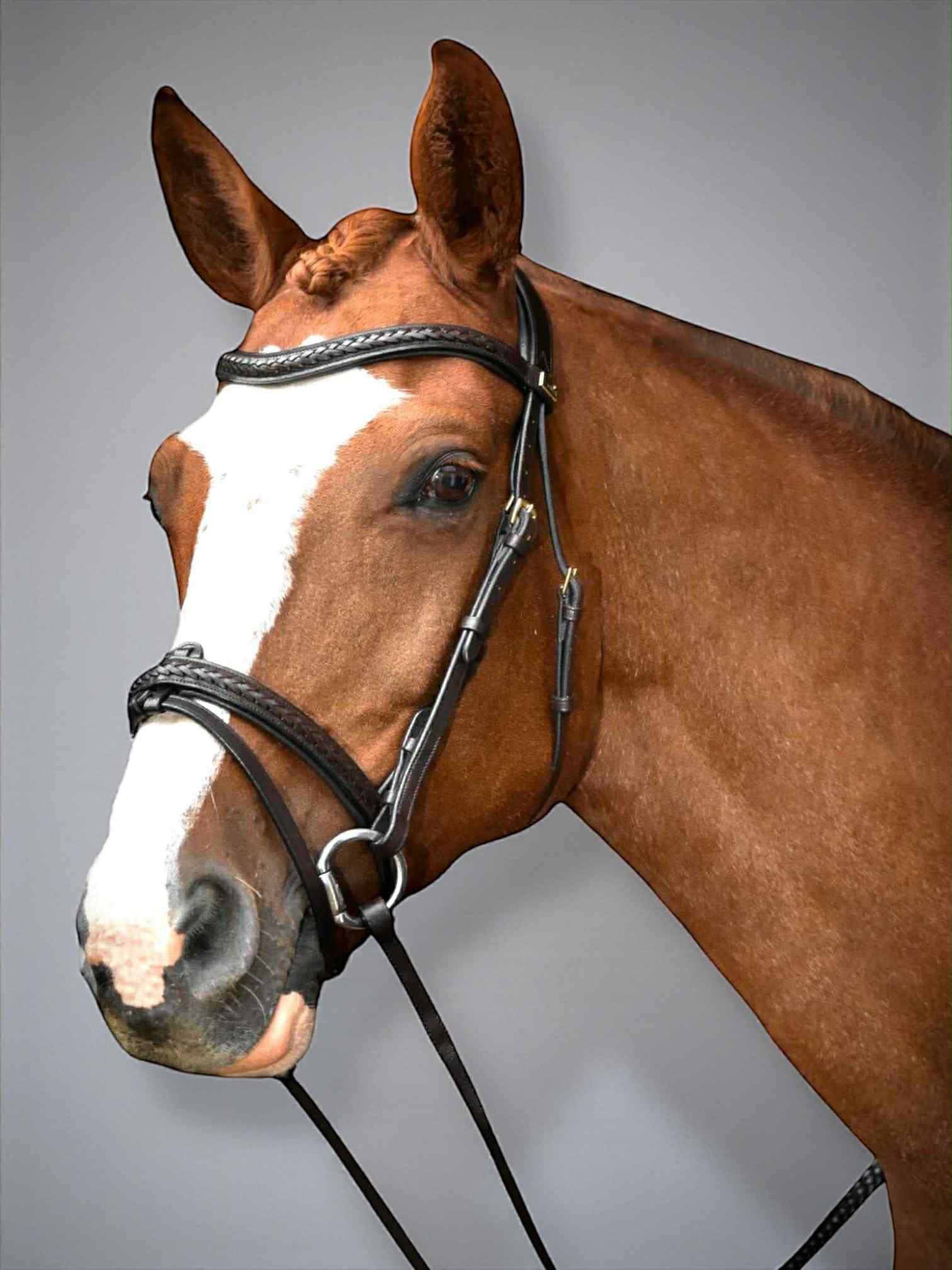 - Zusätzliche geflochtene Lederzügel in Braun (austauschbar)