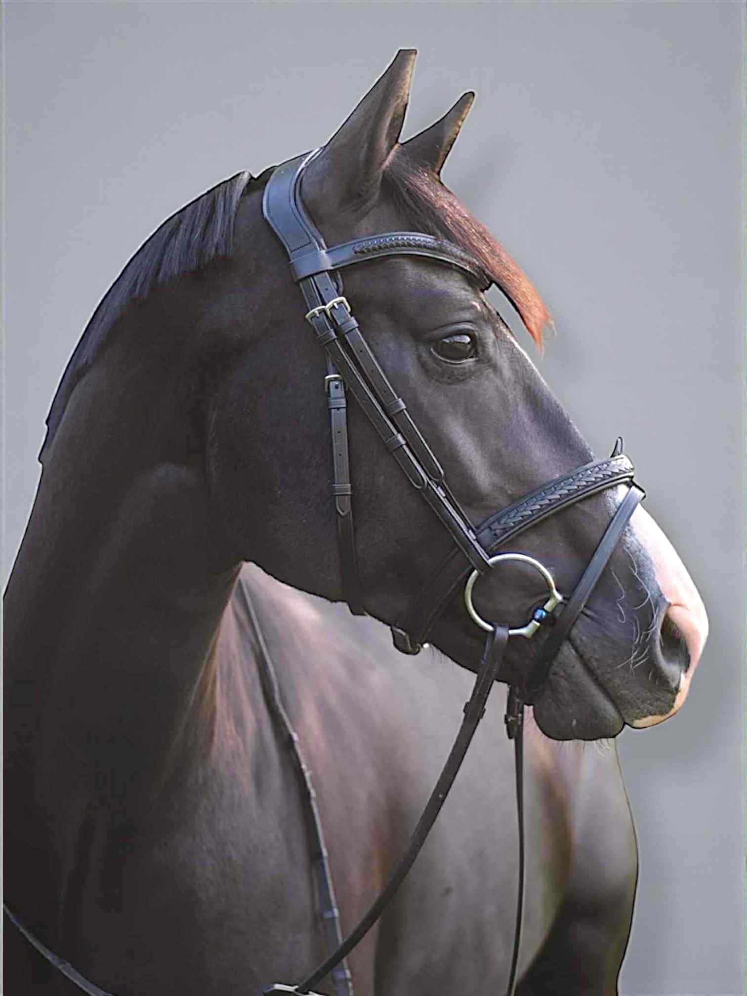 - Zusätzlicher geflochtener Nasenriemen (Sperrriemen + Halter abnehmbar) in Braun (austauschbar)