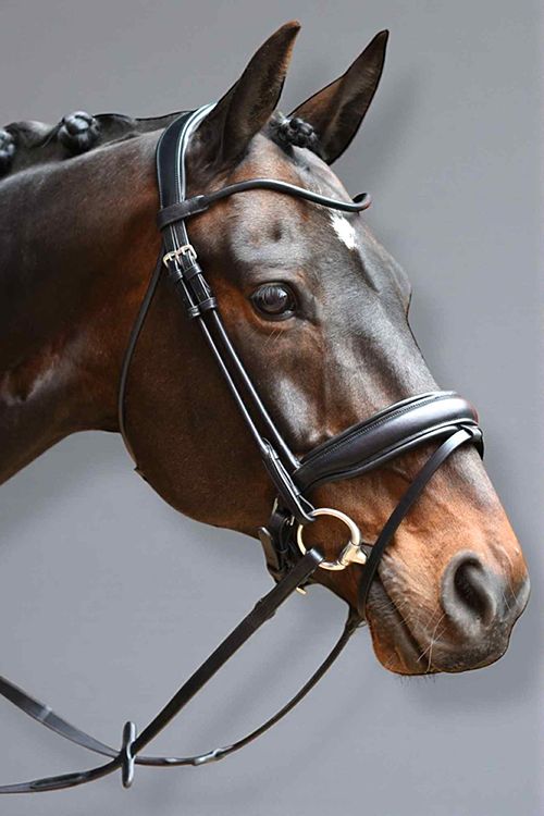 Rundgenähter Dressurzaum aus italienischem Leder – Classic Black